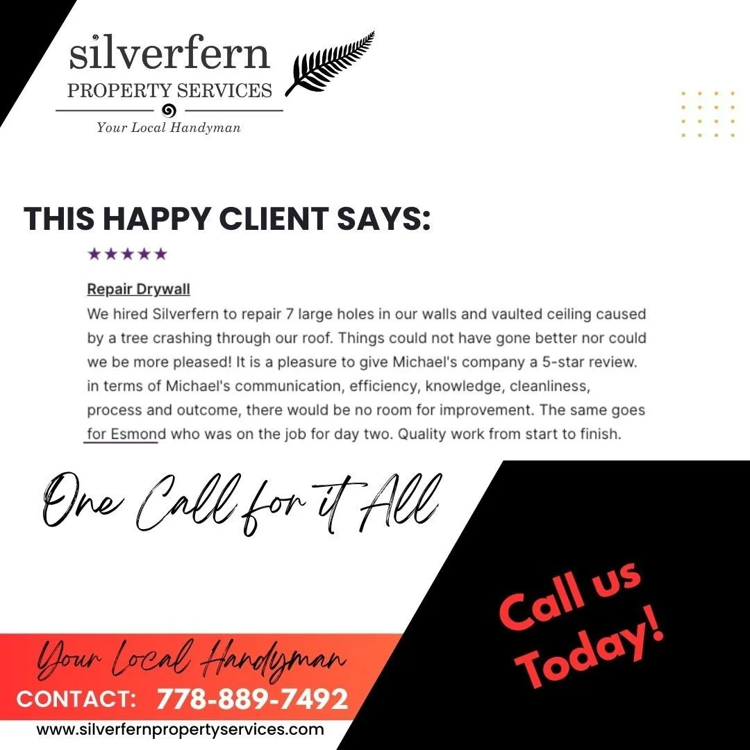 Silverfern is my go-to property services company and I have been working with them for 8 years. The owner, Micheal has a degree in mechanical engineering so he really can figure anything out, and he has amazed me many times with his creative and inventive solutions over the years. Plus, his solutions are more cost effective than the regular trades anyways! He is extremely versatile too: He can do plumbing, electrical, mechanical, and all kinds of repairs all in one visit. It's really a one-stop shop. I really can count on Silverfern for reliable and ingenious solutions for a wide variety of home issues at a better price than anyone else. The best!